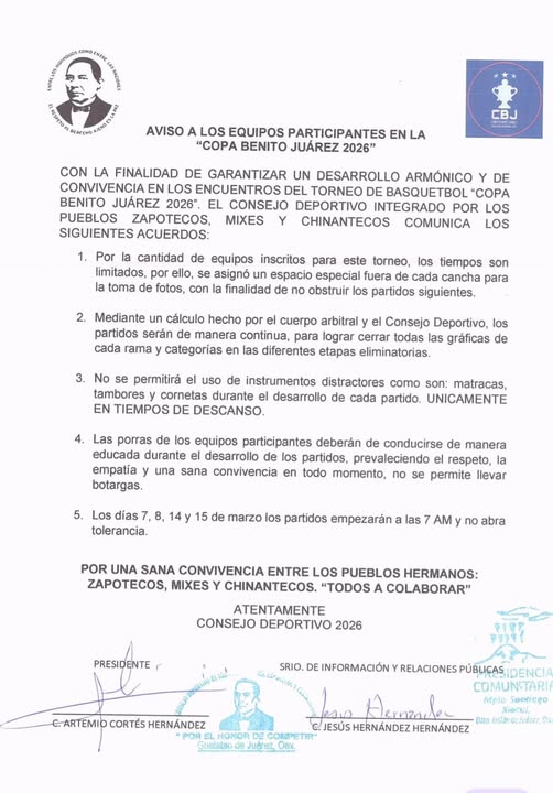 Aviso del consejo deportivo