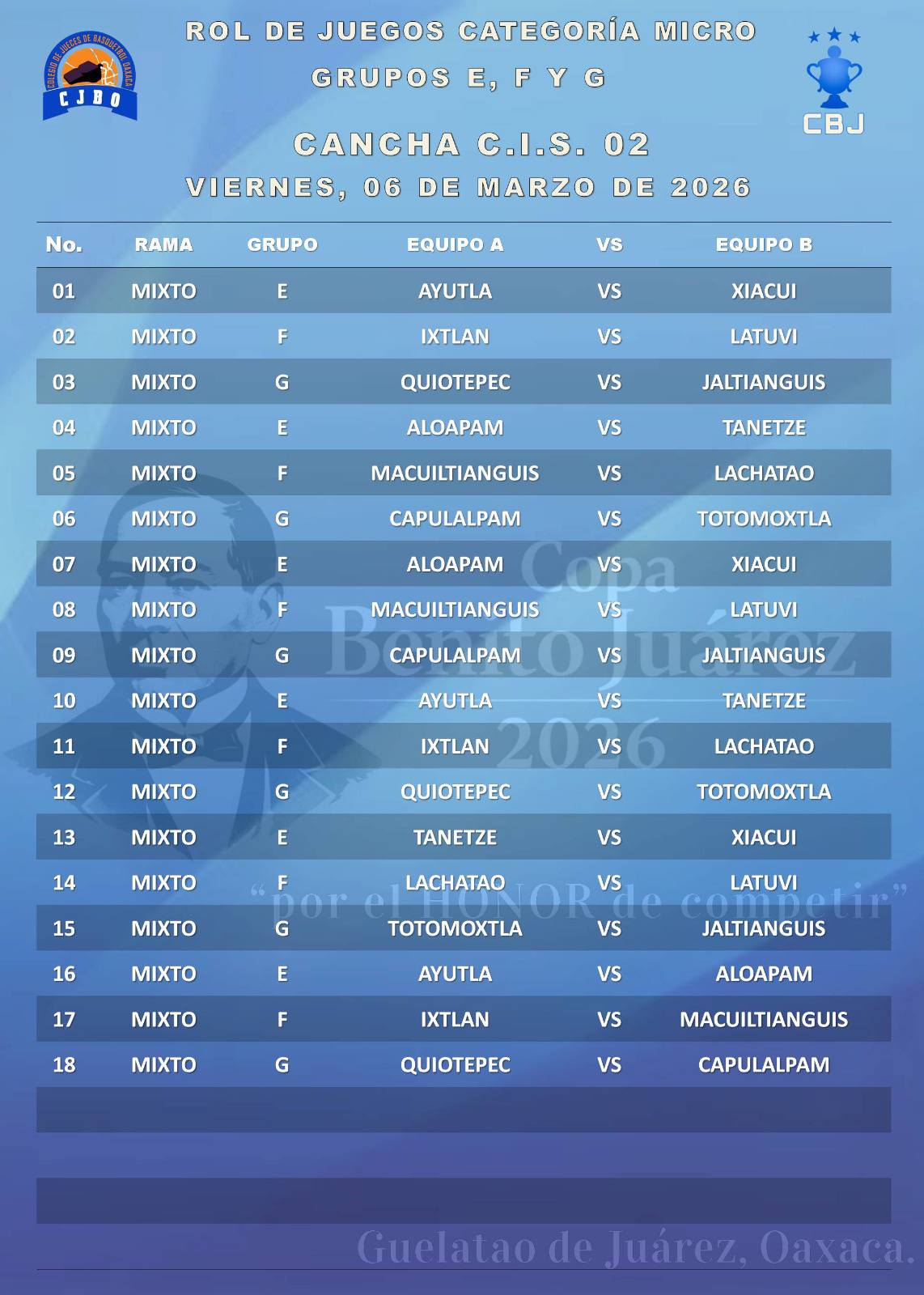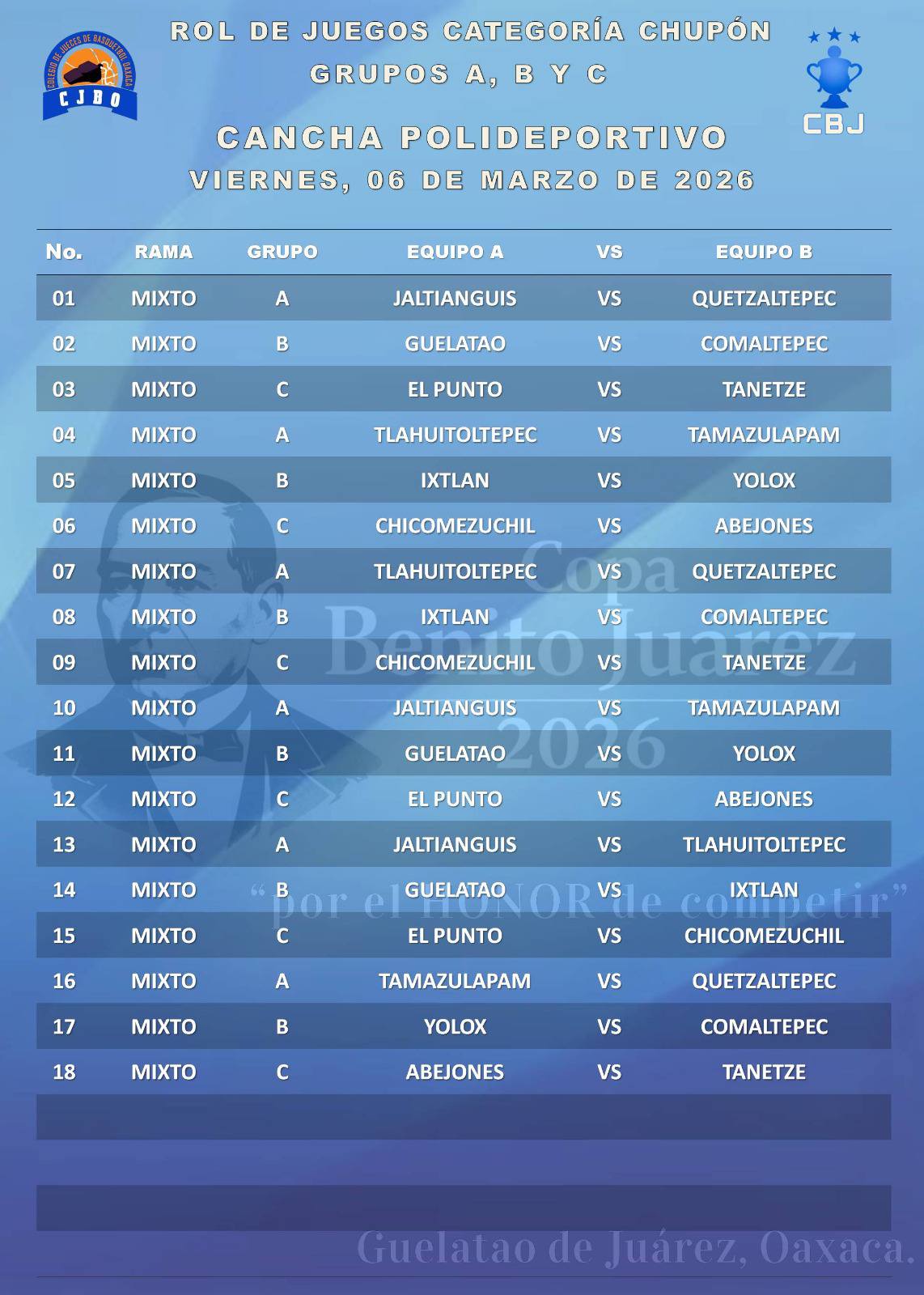 Información tomada del muro de Facebook del Colegio de Jueces de Básquetbol de Oaxaca